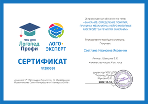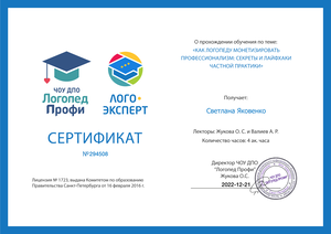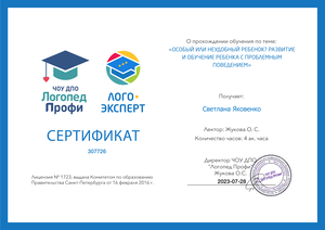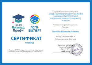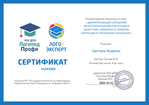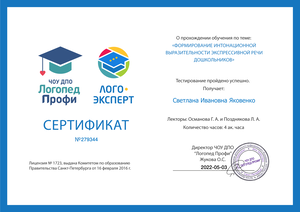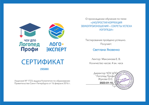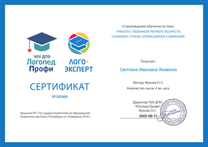 Курсы повышения квалификации. Практика логопеда в ДОУ. Практика логопеда в ДОУ - начинаем и идем к результату. Модуль 4. Частные вопросы логопедической практики. Завершен