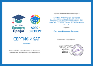 Курсы повышения квалификации. Ребенок с РАС: от точной диагностики к формированию навыков для социума и жизни ребенка Завершен